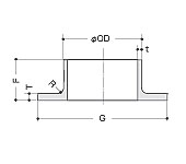 | 呼び徑(mm) | 外徑 OD(mm) | 厚さ(mm) | つばの徑 G (mm) | 高さ | コーナーR(mm) | |