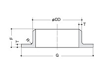| 呼び徑 | 10K (kg) | 外徑 OD (mm) | 厚さ T(mm) | つばの徑 G | 高さF (mm) | コーナーR(mm) | ||