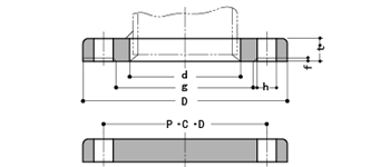 | 呼び徑 | D | t | g | f | P.C.D | ボルト僭方 | h | ボルトの柵び | |